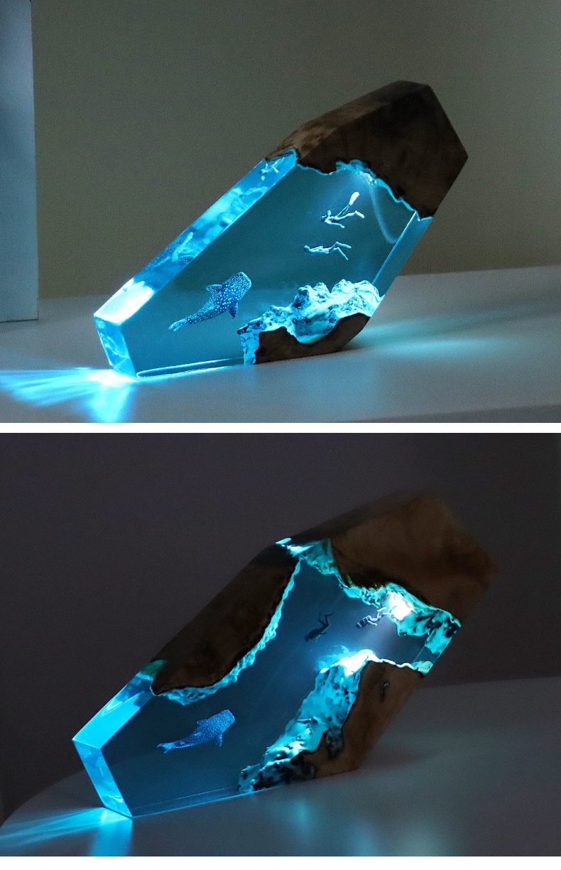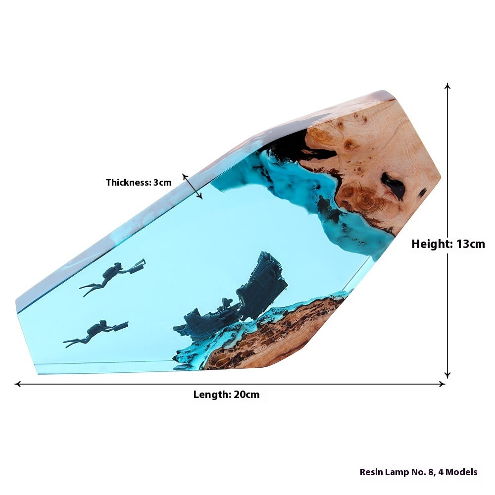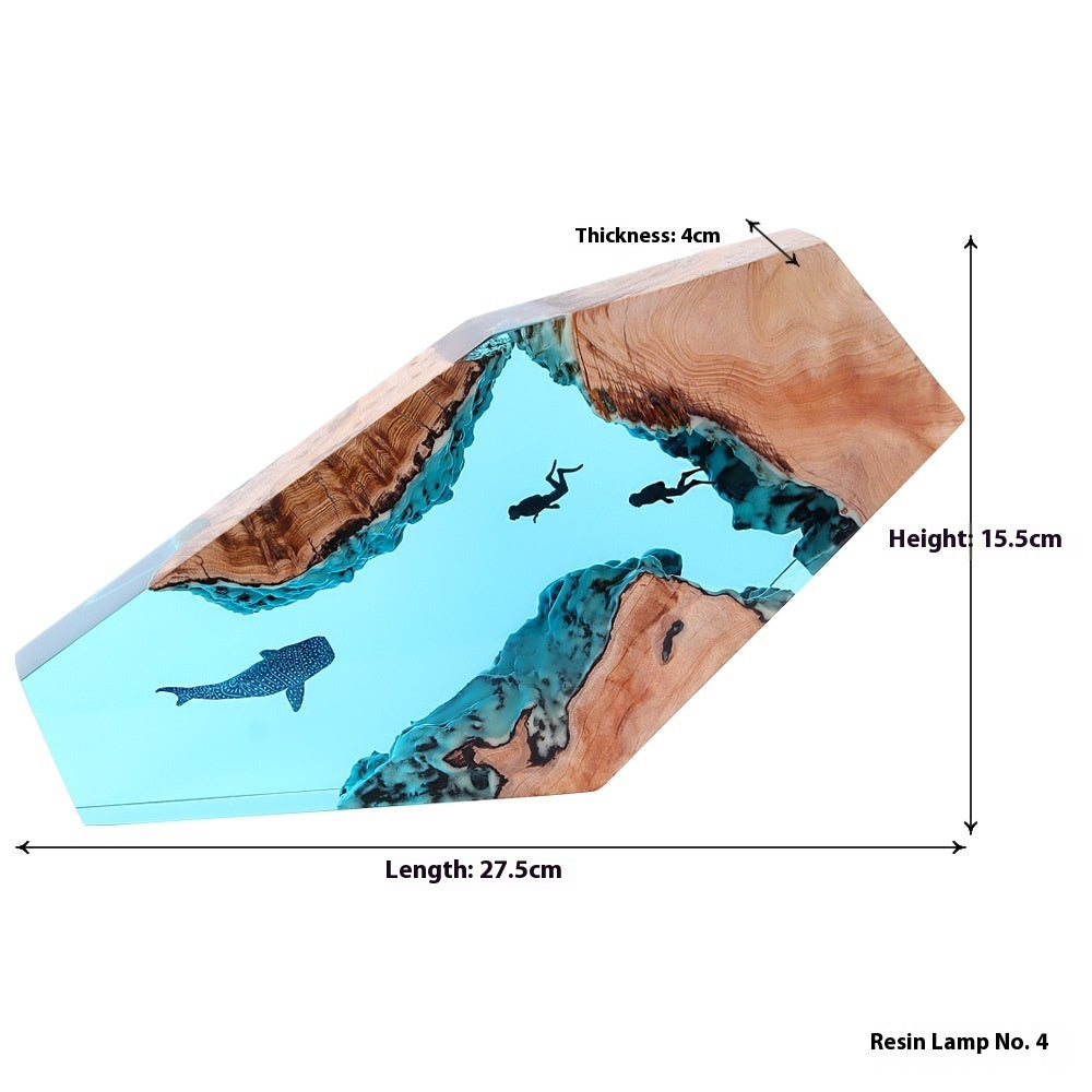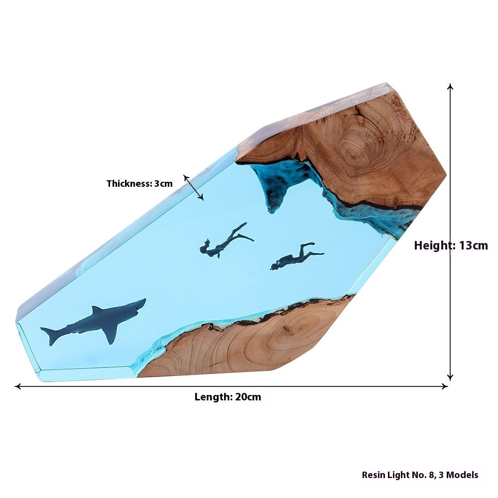 The Dive Moment Resin Lamp is more than a light. It’s a snapshot of that exact feeling: suspended in stillness, watching the sunlight ripple through blue water, surrounded by the quiet company of whales, sharks, or a sunken wreck. Handcrafted from resin and solid wood, each scene is frozen mid-dive, a moment of ocean magic preserved forever.